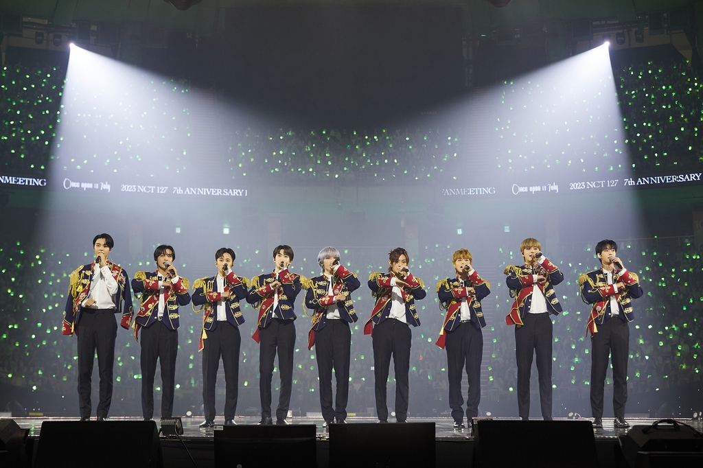 ▲ NCT 127 데뷔 7주년 팬미팅…1만석 매진= 그룹 NCT 127이 지난 16일 서울 잠실실내체육관에서 데뷔 7주년 기념 팬미팅 '원스 어폰 어 줄라이'를 열었다.