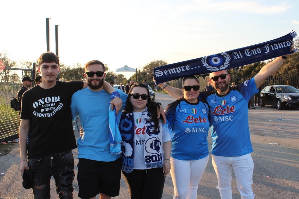 | ▲ 나폴리 구단 훈련장 찾은 팬들 (나폴리=연합뉴스) 신창용 특파원 = 5일(현지시간) 이탈리아 남부 항구 도시 나폴리 외곽의 나폴리 구단 훈련장 입구 근처에서 주세페 라바노(맨 오른쪽)씨와 그의 가족들이 인터뷰 뒤 사진 촬영에 응하고 있다. 2023.05.05 changyong@yna.co.kr |