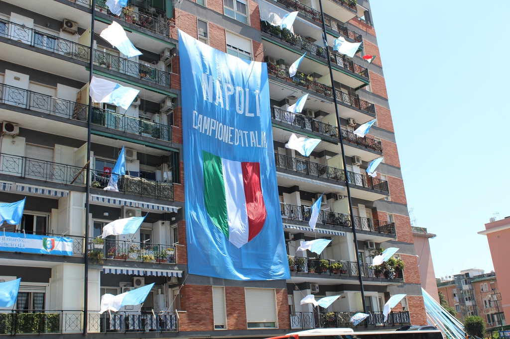 나폴리는 거대한 축제 중…가는 곳마다 하늘색 플래카드와 깃발