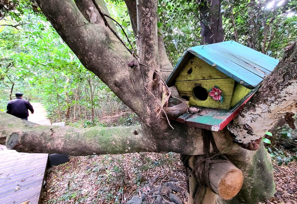 참식나무, 생달나무, 귤나무, 대나무, 팽나무, 후박나무 등 다양한 나무들이 함께 자라나고 있다.