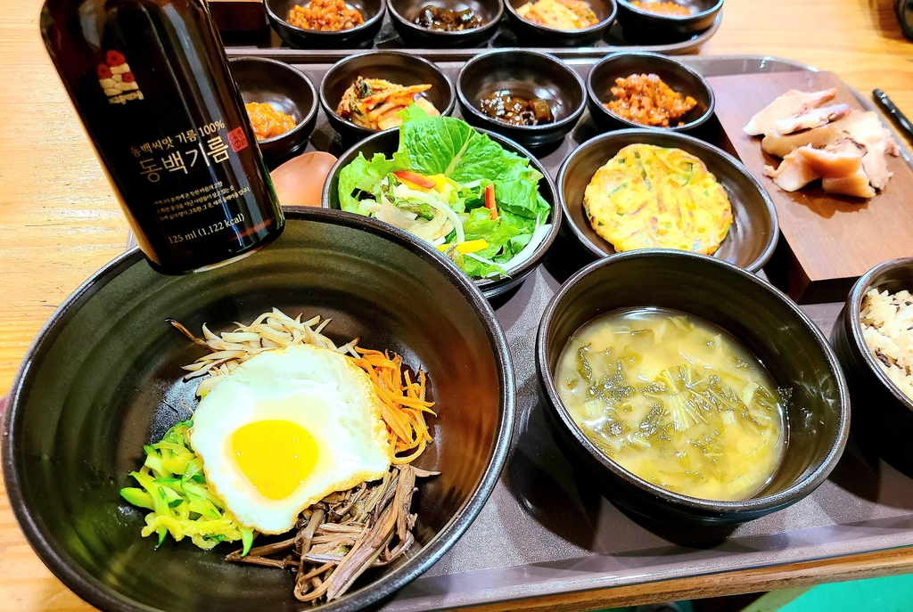 주민들이 직접 채취한 제주 고사리와 동백기름이 첨가된 드레싱 야채샐러드, 동백기름으로 양념한 톳을 넣어 지은 톳밥 등을 맛볼 수 있어 제주의 향기를 오감으로 느낄 수 있다.