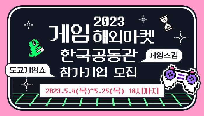(서울=연합뉴스) 김주환 기자 = 한국콘텐츠진흥원은 문화체육관광부와 함께 유럽 최대 게임쇼 '게임스컴 2023', 일본에서 열리는 '도쿄게임쇼 2023'의 한국공동관에 참가할 게임사를 모집한다고 16일 밝혔다.