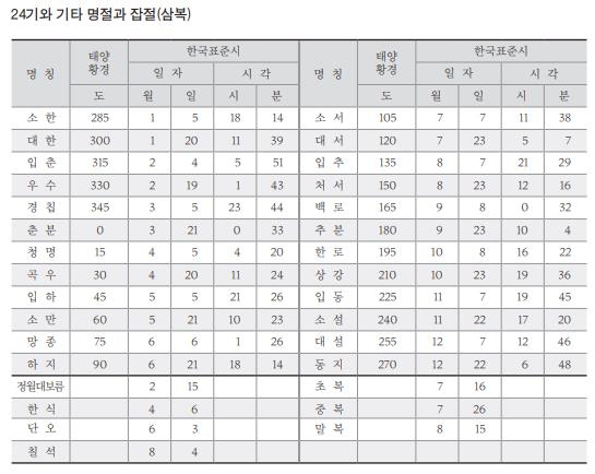 한국민족문화대백과사전에 따르면 절기는 태양년을 태양의 황경(黃經)에 따라 24등분한 기후의 표준점이다.
