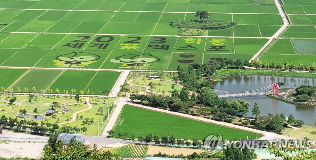 | ▲ 평사리 황금들판에 하동세계차엑스포 성공기원 '들녘아트' [하동군 제공. 재판매 및 DB 금지] |