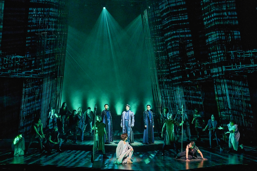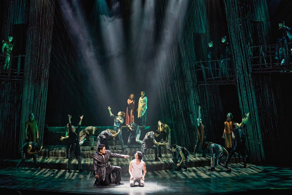 사막을 연상시키던 지난 무대와 달리 나뭇가지로 지어진 성전의 내부를 떠올리게 하는 무대로 어둡고 불안한 예수의 내면을 표현한다.