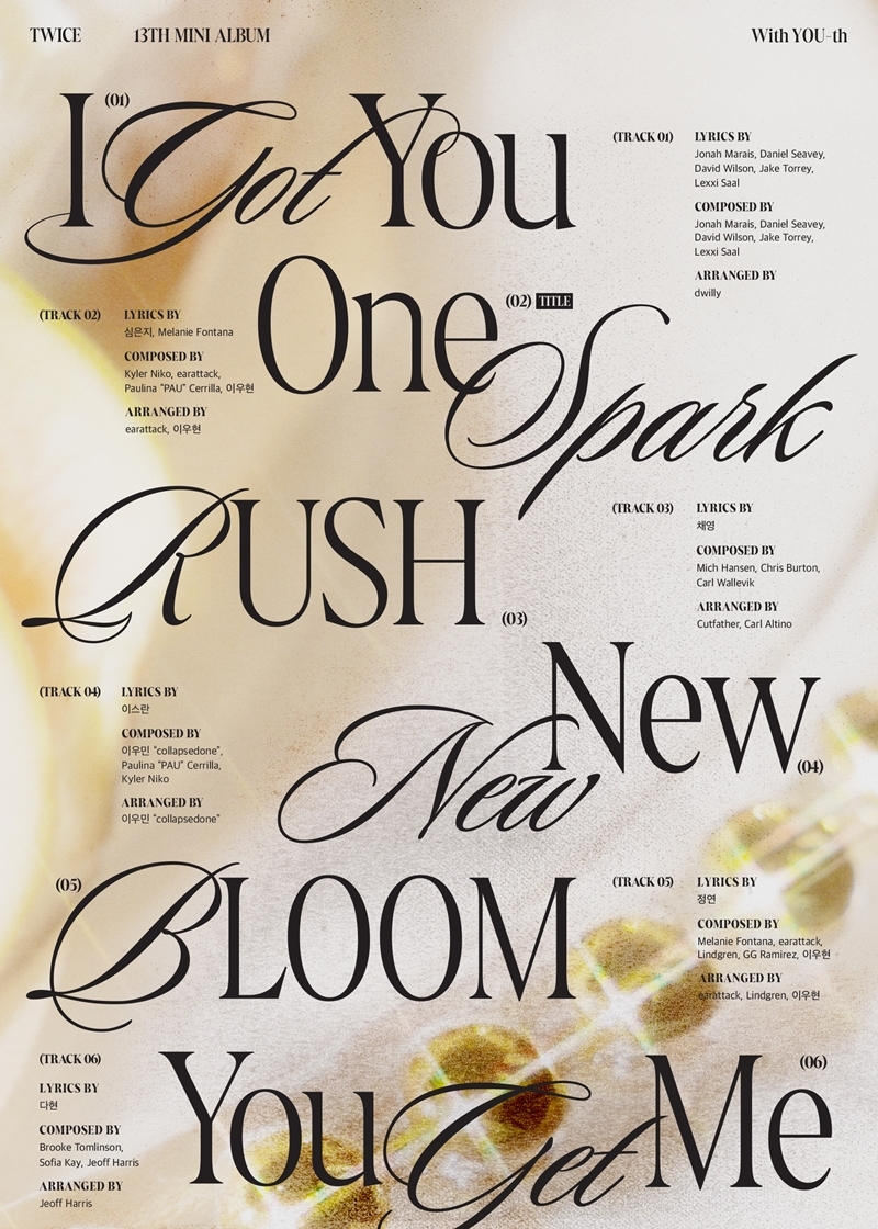 그중 수록곡 '러시', '블룸', '유 겟 미'는 각각 멤버 채영, 정연, 다현이 작사를 맡았다.