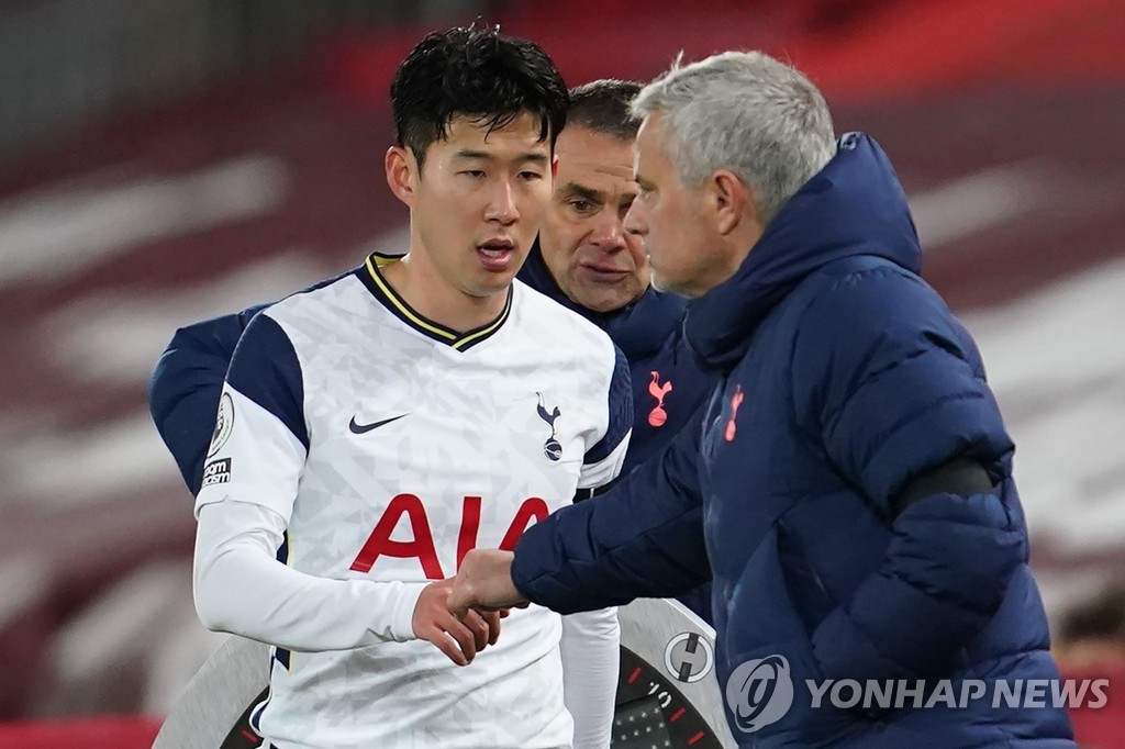 | ▲ 교체되는 손흥민 격려하는 모리뉴 토트넘 감독 [AFP=연합뉴스] |