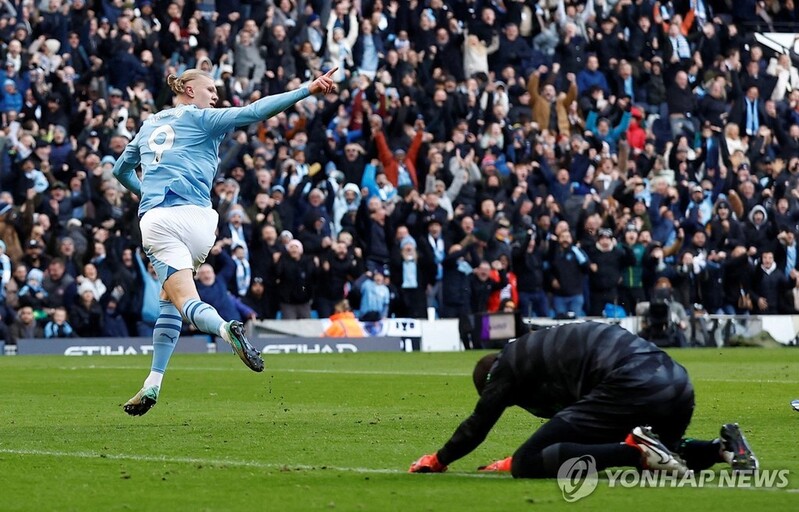 (서울=연합뉴스) 설하은 기자 = 잉글랜드 프로축구 프리미어리그(EPL) 맨체스터 시티(맨시티)의 간판 공격수 엘링 홀란이 EPL 역대 최소 경기 50호골을 터뜨렸다.