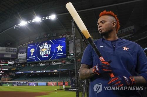 말도나도는 30일 열린 월드시리즈 2차전에 평소 쓰던 배트를 들고나왔으나 3타수 무안타에 그쳤다.