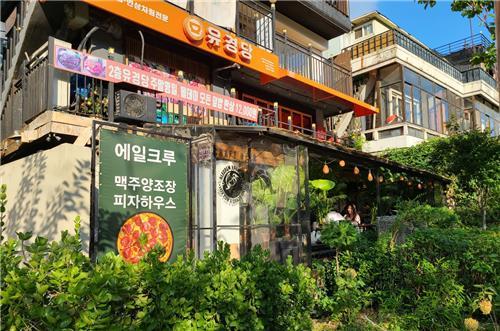 ▲ This photo taken Oct. 4, 2021, shows a craft beer-making pub and restaurant in Mapo, western Seoul. (Yonhap) |