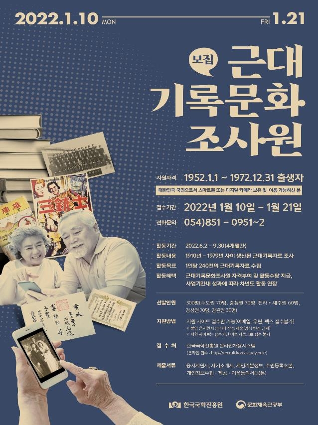 | ▲ '근대 기록문화 조사원' 모집 포스터 [문화체육관광부 제공] |