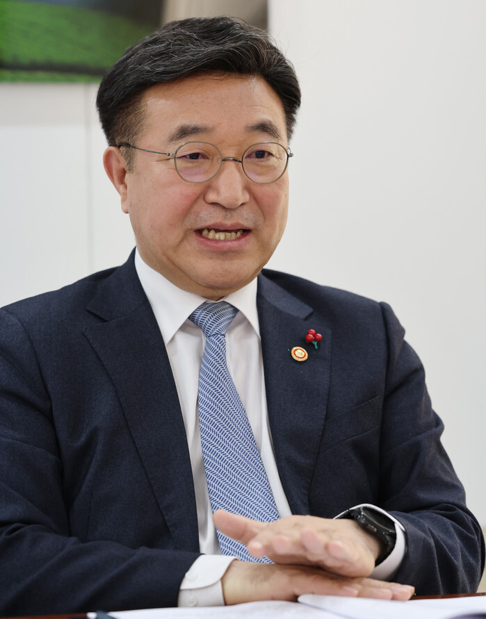 Interior and Safety Minister Yun Ho-jung speaks during an interview with Yonhap News Agency at the government complex in Seoul on Jan. 16, 2026. (Yonhap)