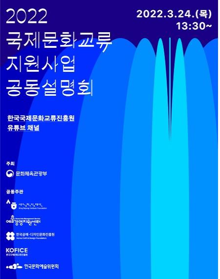 ▲ 문화체육관광부는 오는 24일 오후 1시 30분 '2022 국제문화교류 지원사업 공동 사업설명회'를 온라인으로 개최한다. 세종학당재단, 예술경영지원센터, 한국공예디자인문화진흥원, 한국문화예술위원회, 한국국제문화교류진흥원 등 5개 기관이 지원사업의 종합 정보를 제공한다. 국제문화교류진흥원 유튜브 채널(www.youtube.com/c/koficeculture)에서 볼 수 있다. (서울=연합뉴스)