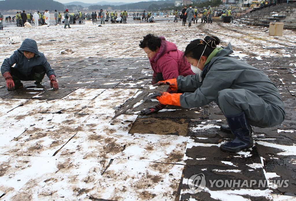 ▲ 태안유류피해극복기록물, 세계기록유산 아태 지역목록 등재 2007년 12월 충남 태안에서 발생한 대형 유류 유출 사고 당시 방제작업을 펼치는 자원봉사자들의 모습 [문화재청 제공. 재판매 및 DB 금지]