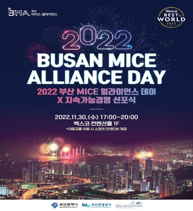 (부산=연합뉴스) 조정호 기자 = 부산관광공사는 30일 오후 5시 부산 벡스코에서 '2022년 부산 마이스(MICE) 얼라이언스 데이'를 열고 지속가능한 경영을 선포한다고 밝혔다.