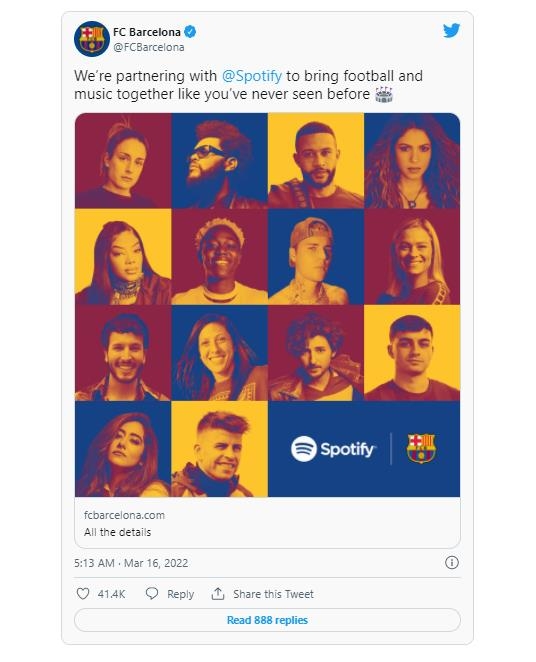 이번 계약으로 바르셀로나 남녀 팀 유니폼 셔츠 전면에 2022-2023시즌부터 4시즌 동안 스포티파이 브랜드가 자리 잡는다.