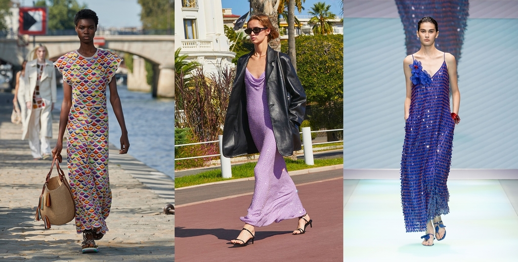 엠포리오 아르마니와 끌로에, 셀린느 등 명품 브랜드에서도 캐주얼하면서도 화려한 스팽글과 패턴을 더한 원피스를 선보였다.