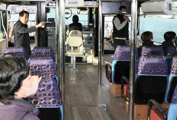 | ▲ 포항운하 탑승한 나동연 양산시장(왼쪽) [양산시 제공. 재판매 및 DB 금지] |