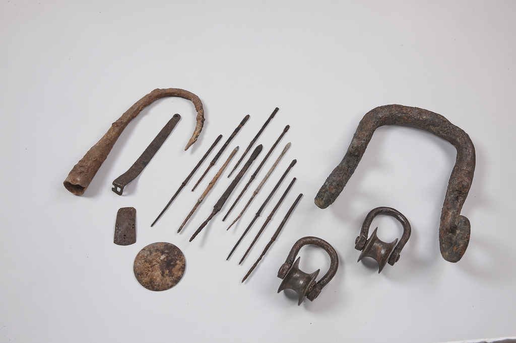 | ▲ 장수 침령산성 1호 집수시설에서 출토된 철기류 [문화재청 제공. 재판매 및 DB 금지] |