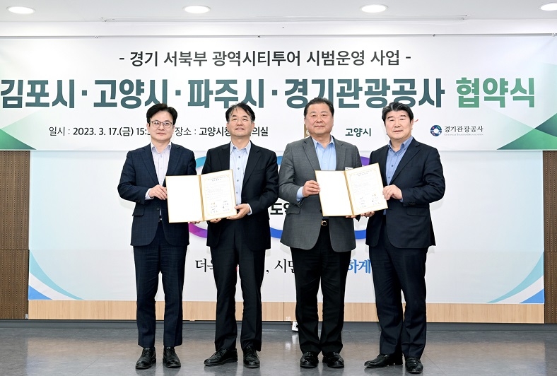 고양시는 17일 고양시청에서 김포시, 파주시, 경기관광공사와 '경기 서북부 광역시티투어 시범운영'을 위한 업무협약(MOU)을 체결했다.