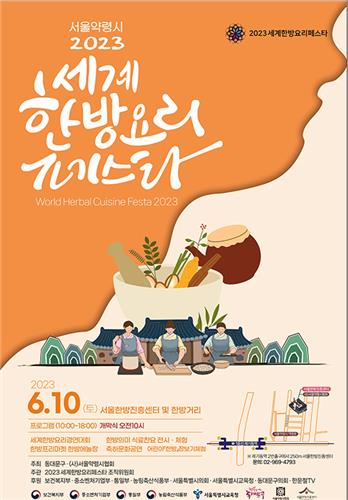 (서울=연합뉴스) 백나리 기자 = 사단법인 서울약령시협회(회장 김월진)는 10일 동대문구 제기동 서울약령시 한방거리에서 동대문구와 함께 '2023 세계한방요리페스타'를 개최한다고 9일 밝혔다.