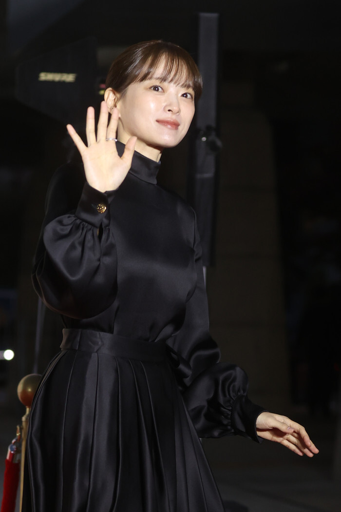 South Korean actress Chun Woo-hee attends the red carpet event of the 2024 Korea Popular Culture and Arts Awards at the National Theater of Korea in Seoul on Oct. 31, 2024. (Yonhap)