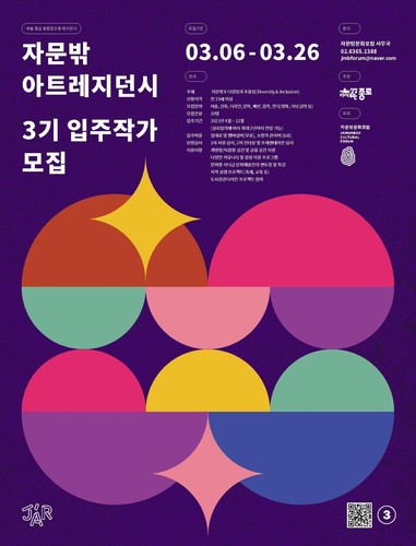 (서울=연합뉴스) 황희경 기자 = 자문밖문화포럼은 26일까지 신진·성장기 문화예술인을 위한 창작플랫폼인 자문밖아트레지던시의 3기 입주작가를 모집한다고 16일 밝혔다.