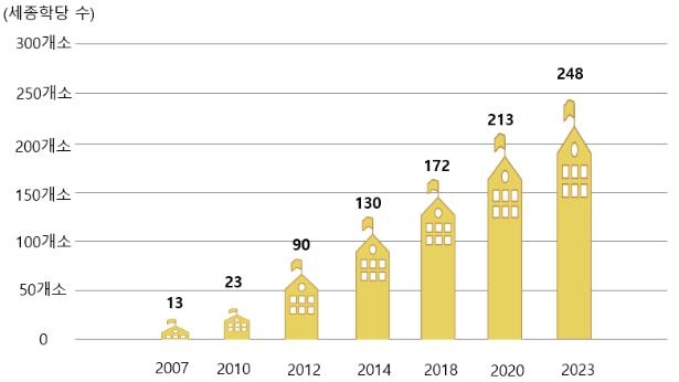 이로써 2007년 3개국 13곳으로 처음 시작한 세종학당은 2023년 기준 85개국 248곳으로 확대됐다.