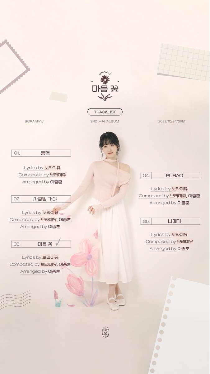 ▲ 보라미유 전곡 작사·작곡 미니음반 = 가수 보라미유가 오는 24일 세 번째 미니음반 '마음 꽃'을 발표한다고 소속사 쇼파르엔터테인먼트가 밝혔다.