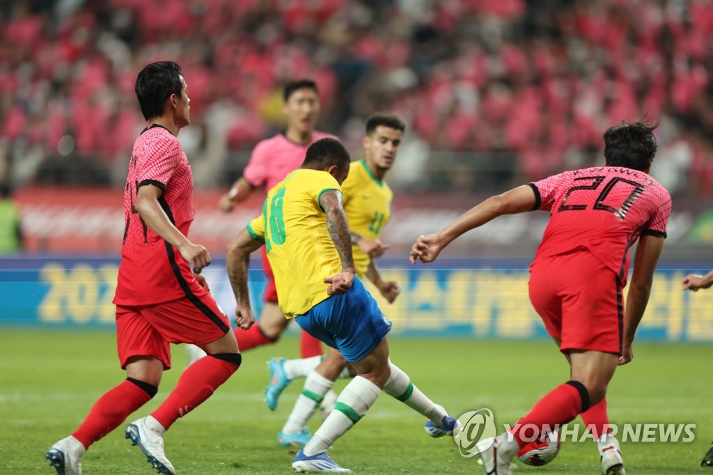 | ▲ 다섯 번째 골 넣는 제주스 (서울=연합뉴스) 윤동진 기자 = 2일 오후 서울월드컵경기장에서 열린 남자 축구 국가대표팀 친선경기 한국과 브라질의 경기에서 가브리에우 제주스가 다섯 번째 골을 넣고 있다. 2022.6.2 mon@yna.co.kr |