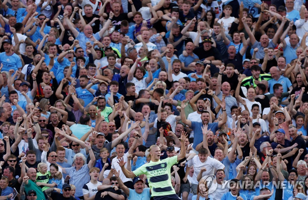 (서울=연합뉴스) 이의진 기자 = 잉글랜드 프로축구 프리미어리그(EPL) '디펜딩 챔피언' 맨체스터시티(이하 맨시티)가 '괴물 골잡이' 엘링 홀란의 멀티골을 앞세워 2022-2023시즌을 승리로 출발했다.