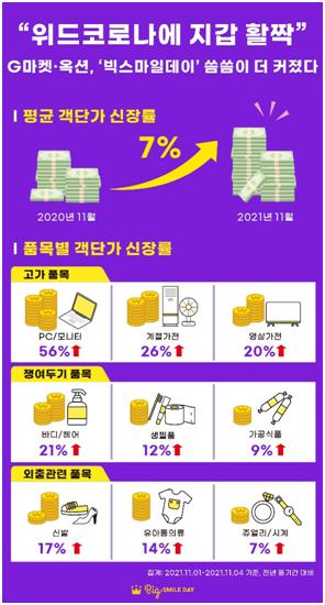 올해 빅스마일데이 1인당 구매 객단가는 지난해 행사 때보다 평균 7% 증가한 것으로 나타났다.