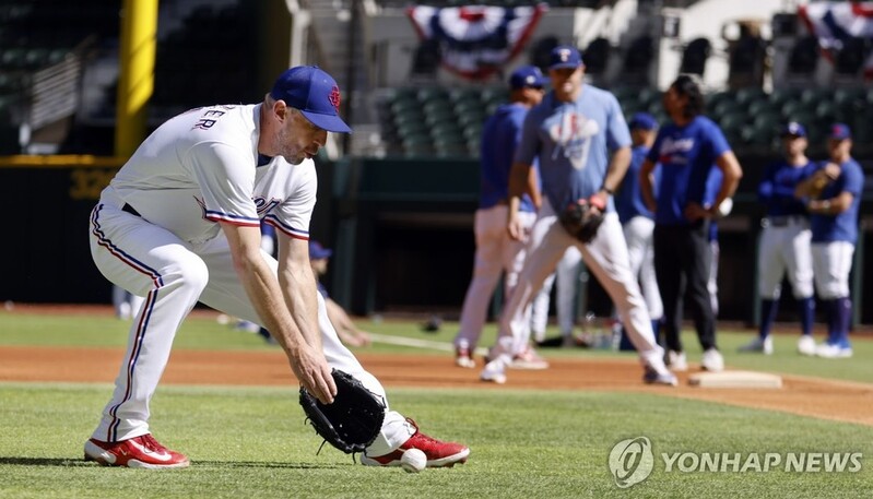 | ▲ 수비 훈련하는 텍사스 우완 투수 셔저 [댈러스 모닝뉴스/AP=연합뉴스] |
