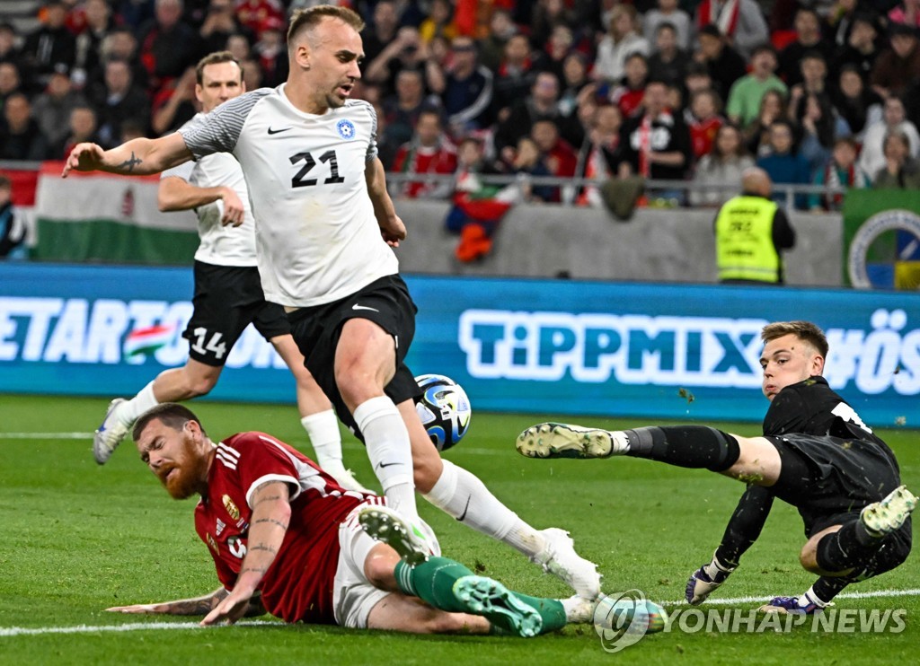 | ▲ 헝가리 대표팀 마틴 아담(왼쪽)이 에스토니아와 경기하는 모습. [AFP=연합뉴스] |