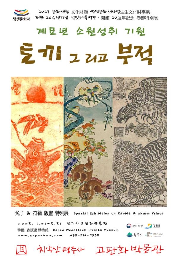 강원 원주 명주사 고판화박물관은 이달 21일부터 토끼 관련 판화와 부적 판화, 목판 등 70여 점을 선보이는 '계묘년 소원성취 기원 : 토끼 그리고 부적 판화' 특별전을 연다고 12일 밝혔다.