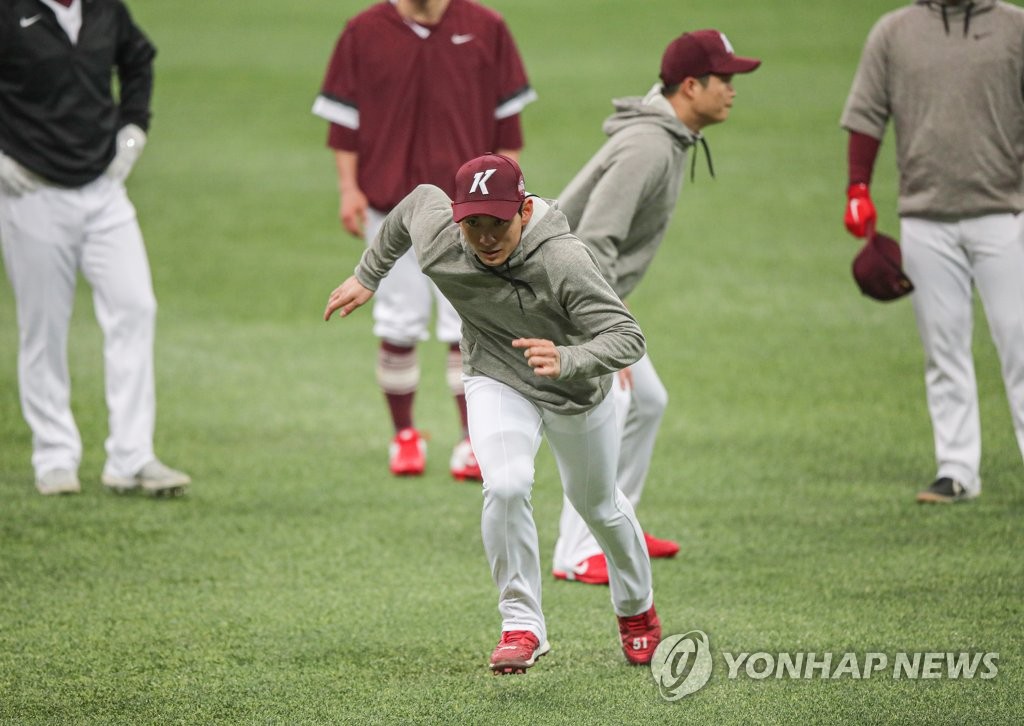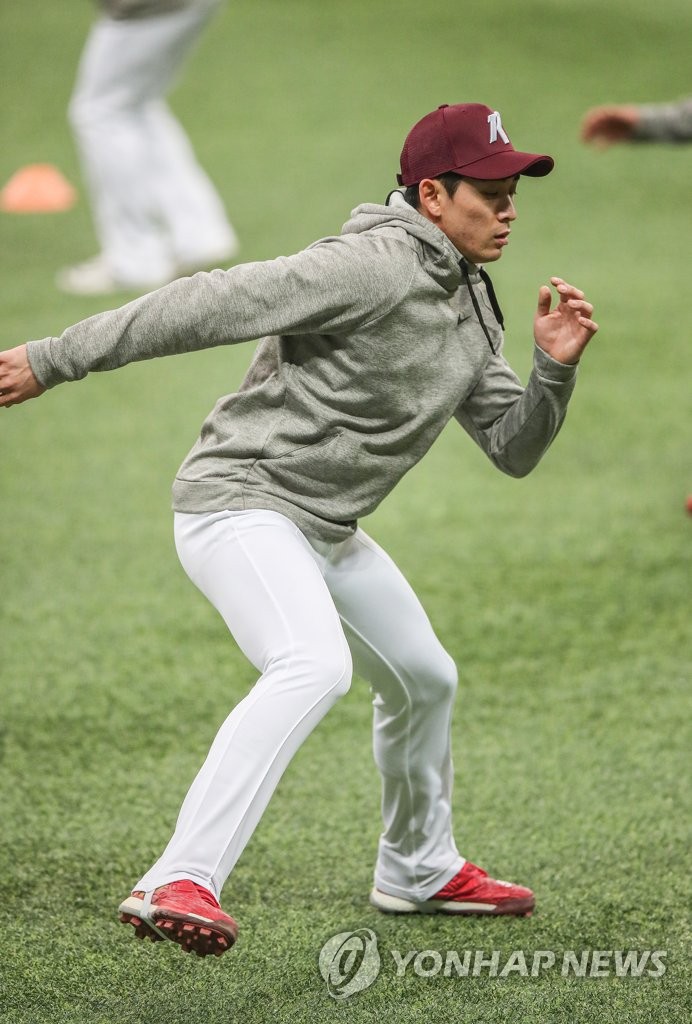 | ▲ Lee Jung-hoo of the Kiwoom Heroes stretches before the start of spring training at Gocheok Sky Dome in Seoul on Feb. 1, 2021. (Yonhap) |
