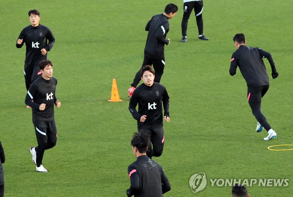 | ▲ Members of the South Korean men's national football team train at a facility in Yokohama, Japan, on March 23, 2021, in preparation for a friendly match against Japan. (Yonhap) |
