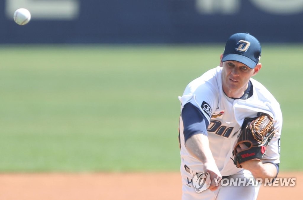 ▲ In this file photo from March 17, 2021, Drew Rucinski of the NC Dinos pitches against the Lotte Giants in the top of the first inning of a Korea Baseball Organization spring training game at Changwon NC Park in Changwon, 400 kilometers southeast of Seoul. (Yonhap)