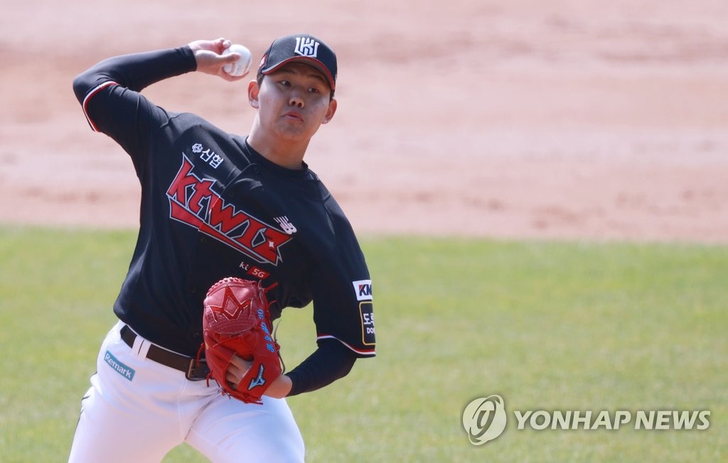 ▲ In this file photo from March 21, 2021, So Hyeong-jun of the KT Wiz pitches against the Doosan Bears in the bottom of the first inning of a Korea Baseball Organization preseason game at Jamsil Baseball Stadium in Seoul. (Yonhap)
