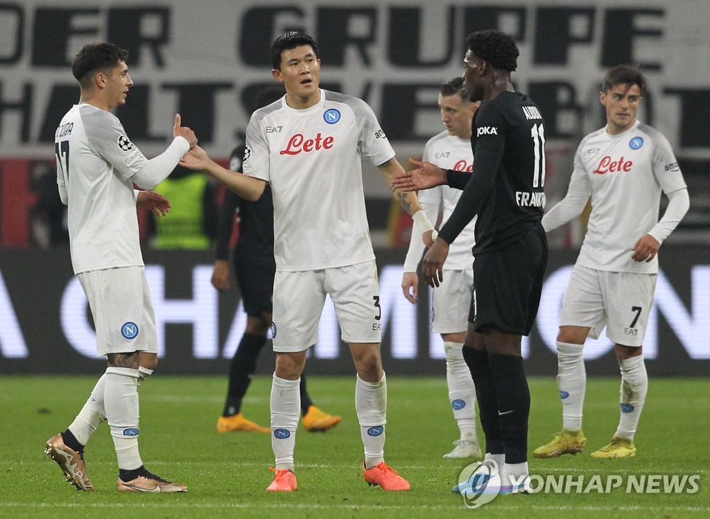 | ▲ 22일 프랑크푸르트와의 16강 1차전 때 김민재(가운데) 등 나폴리 선수들 [AFP=연합뉴스] |