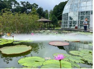 전시한 열대 수련에 대한 자세한 설명은 열대식물자원센터 앞 광장에서 정해진 시간에 숲해설사에게 들을 수 있다.