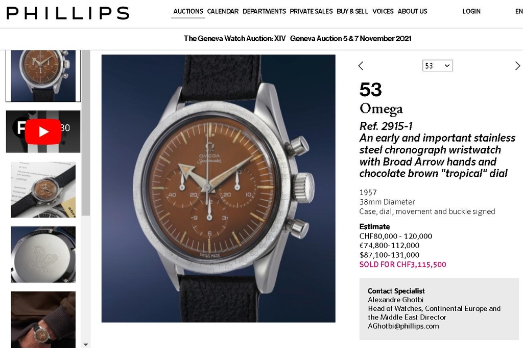 | ▲ 필립스 옥션에 올려진 문제의 '짝퉁' 스피드마스터 [필립스 옥션 홈페이지 캡처. 재판매 및 DB 금지] |