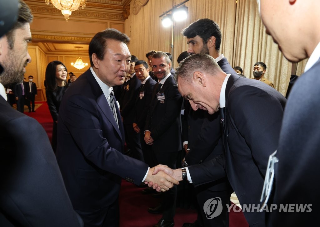 "To South Koreans, you are the same as World Cup champion," President Yoon said in his welcome speech.