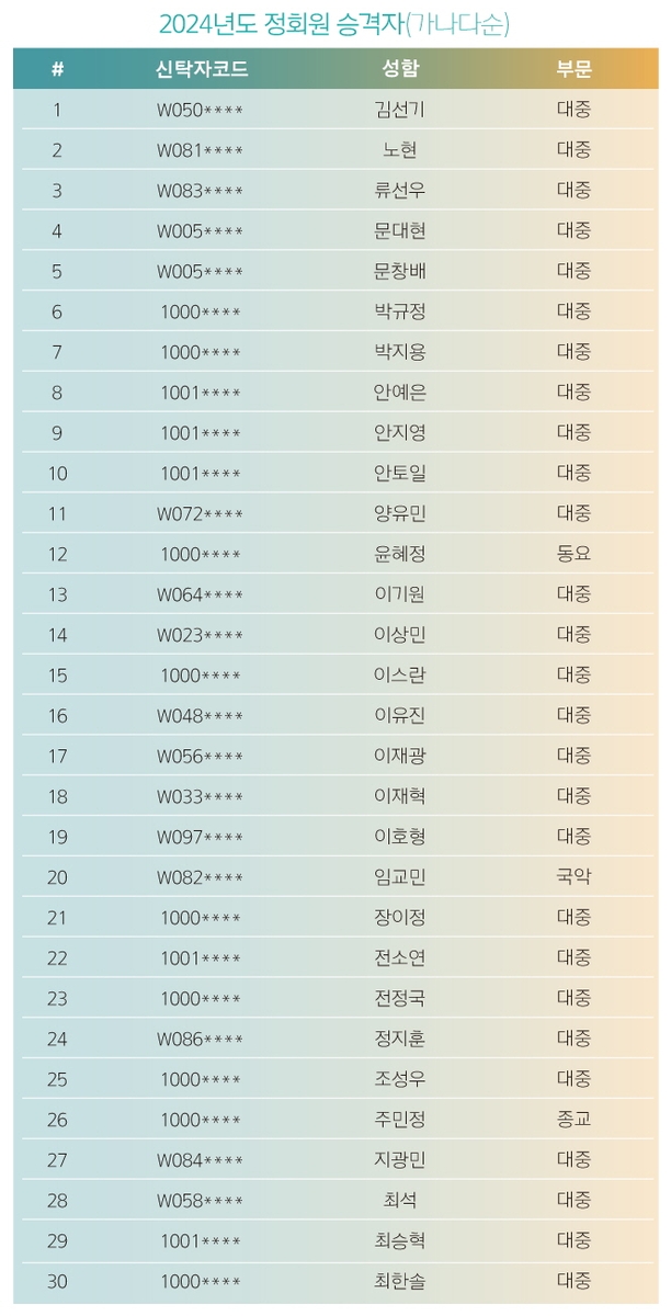 | ▲ 2024년도 정회원 승격자 [한음저협 제공. 재판매 및 DB 금지] |