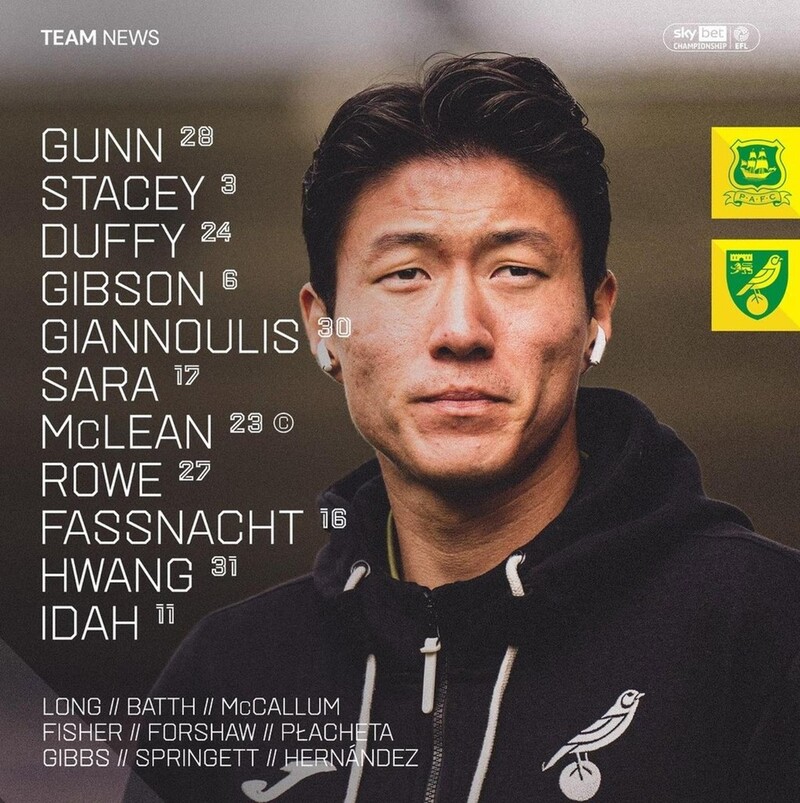 | ▲ 첫 선발 출전한 황의조 [노리치시티 인스타그램 캡처. 재판매 및 DB 금지] |