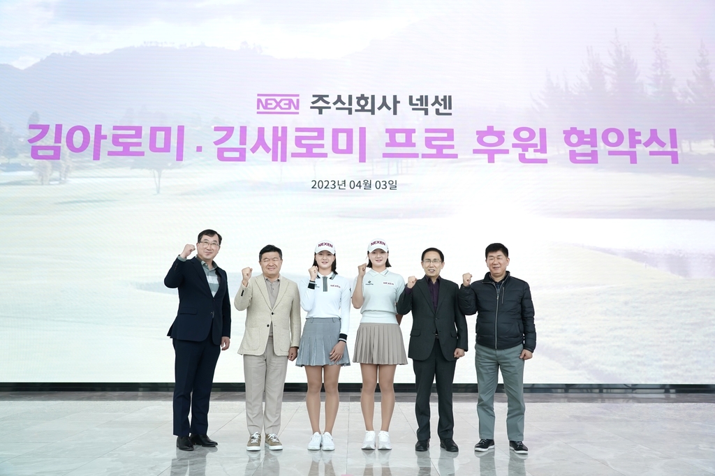 (서울=연합뉴스) 최송아 기자 = 넥센그룹은 한국여자프로골프(KLPGA) 투어에서 뛰는 '쌍둥이 자매' 선수 김아로미, 김새로미 자매와 메인 후원 계약을 체결했다고 4일 밝혔다.