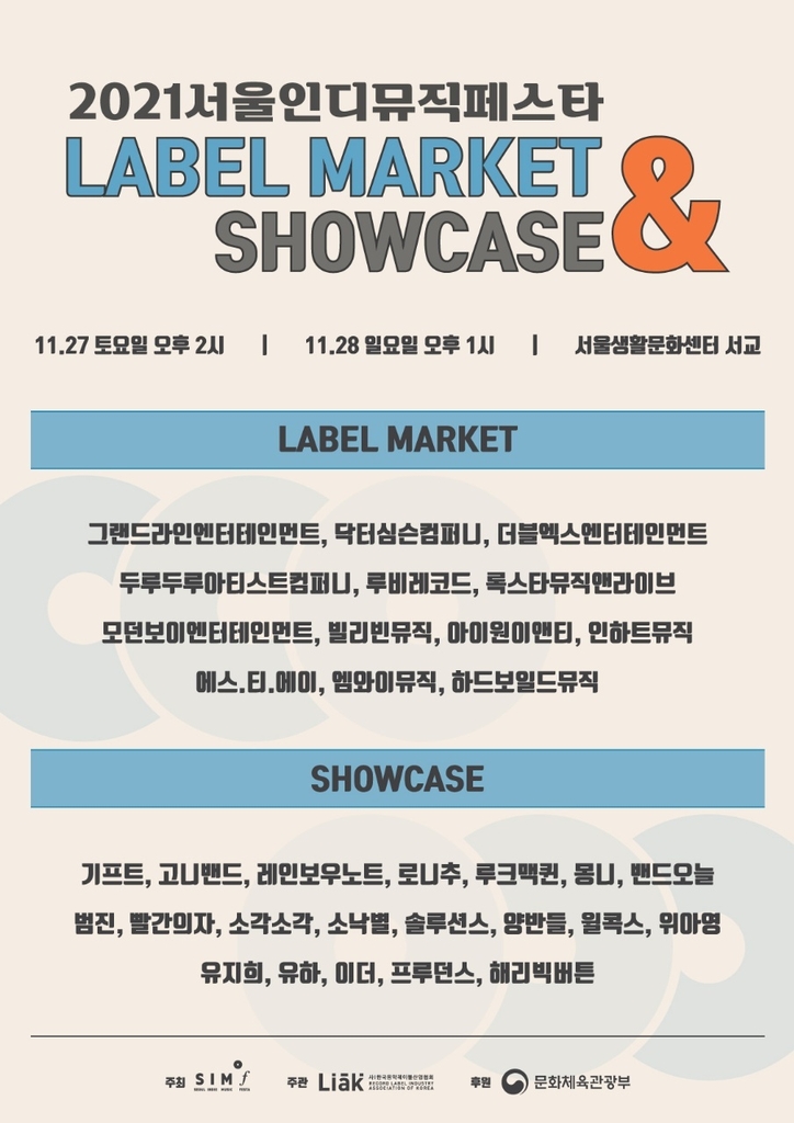 이번 행사에서는 국내 인디 레이블이 소속 뮤지션의 음반 등 다양한 상품을 선보이는 '레이블 마켓'과 뮤지션들이 직접 무대에 올라 노래하는 '쇼케이스'가 진행될 예정이다.
