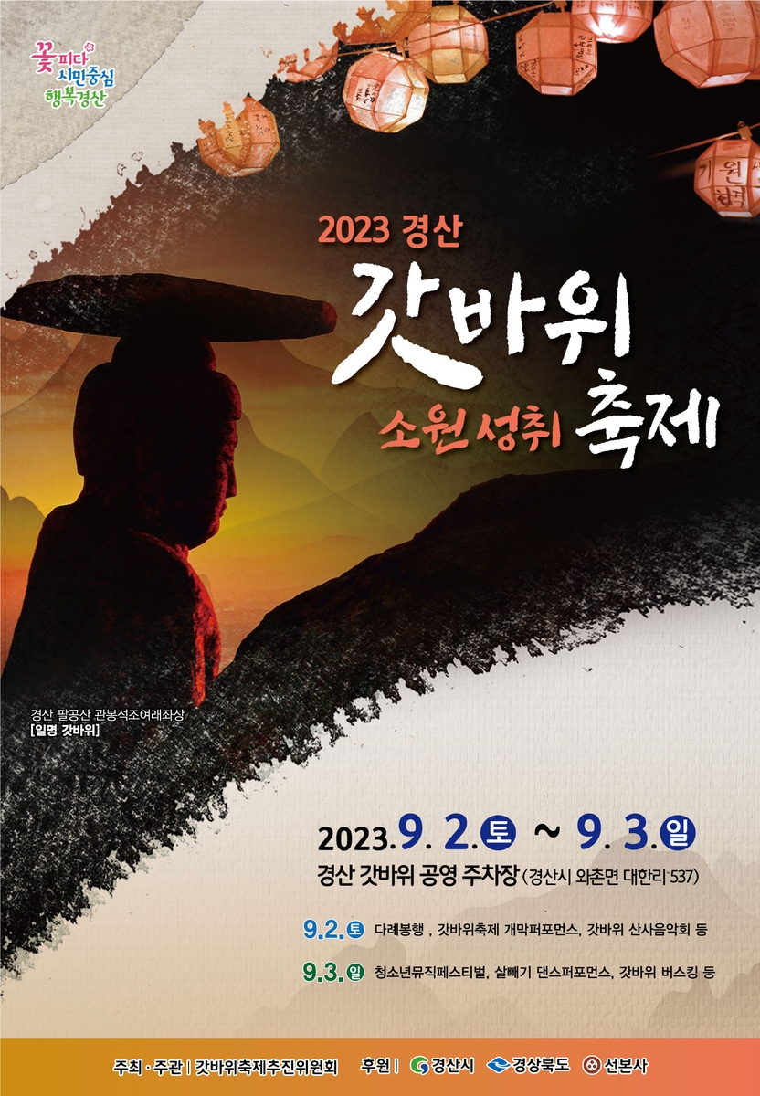 (경산=연합뉴스) 이강일 기자 = '2023 경산갓바위축제'가 다음달 2∼3일 경북 경산시 와촌면 갓바위 공영주차장 일원에서 열린다.