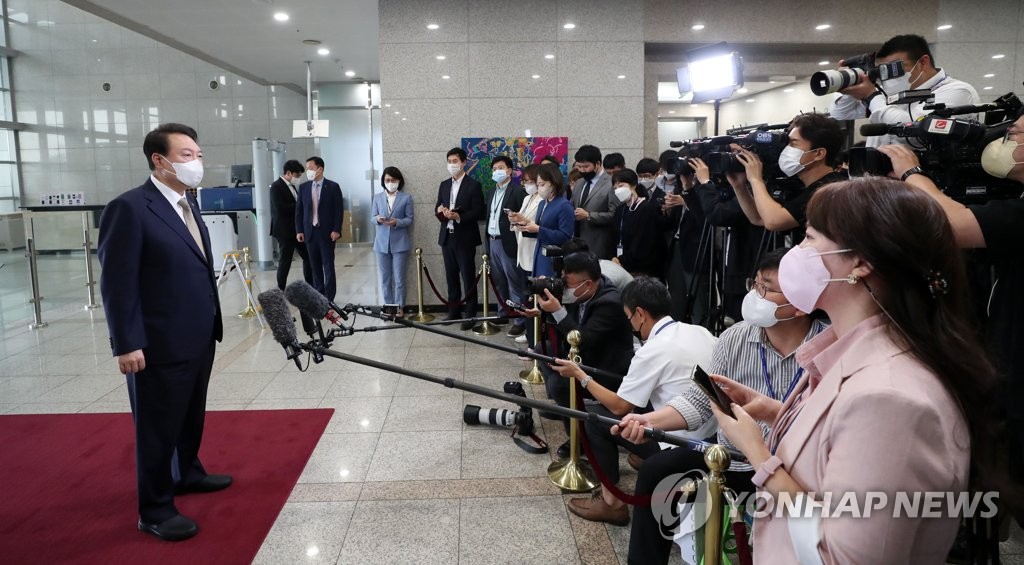 The drop could be attributable to the hot mic controversy and Yoon's accusation of media manipulation after he came under fire for using vulgar words in private remarks to aides caught on a hot mic during his trip to New York last month, according to Bae Cheol-ho, a senior analyst at Realmeter.