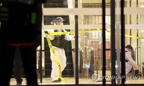 | ▲ Officials control access to a department store in Bundang, south of Seoul, on Aug. 3, 2023, after a stabbing rampage left 14 wounded. (Yonhap) |